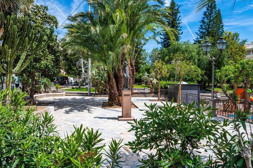 Sono stati ultimati i lavori che hanno avuto luogo nelle scorse settimane per la posa della nuova pavimentazione in quarzite, e posata con tecnica ad opus incertum, e l'abbattimento delle barriere architettoniche nella parte rialzata dei Giardini Charlie Chaplin di Alassio, in corrispondenza con la statua dedicata al celebre personaggio.