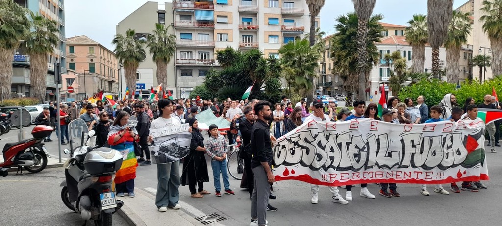 Questo pomeriggio, 12 maggio, il centro di Savona si è colorato delle bandiere palestinesi nel corteo per la richiesta di un cessate il fuoco