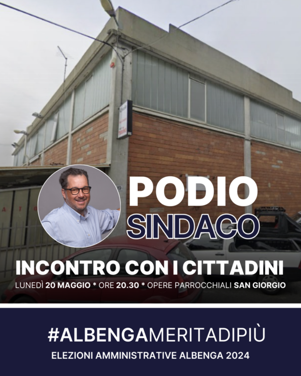 Proseguono gli incontri sul territorio del candidato sindaco del centrodestra albenganese Nicola Podio. Lunedì 20 maggio alle 20.30 l’architetto ingauno incontrerà i cittadini presso le opere parrocchiali di San Giorgio.
