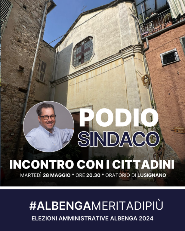 L’architetto ingauno incontrerà i cittadini della frazione di Lusignano martedì 28 maggio alle 20.30 presso l’oratorio.
