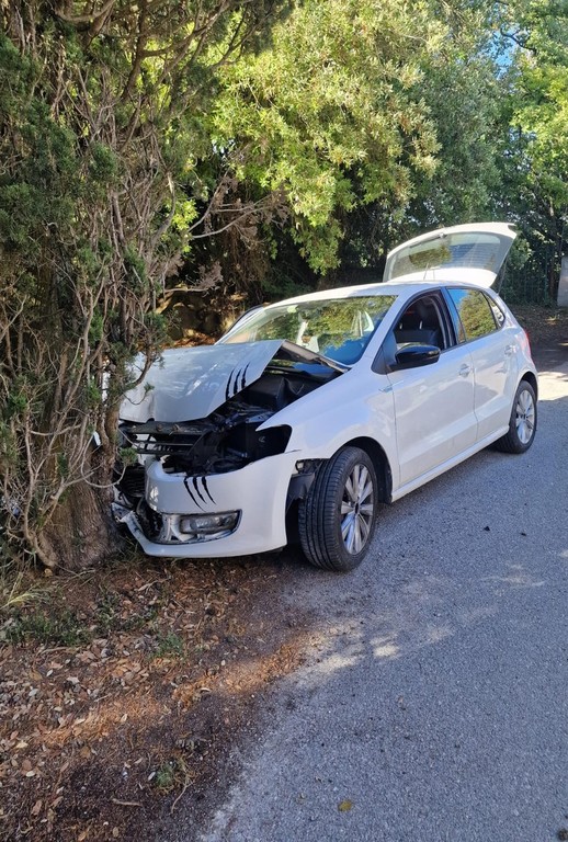 Incidente lungo la Sp45 sull'altopiano delle Manie, a Finale Ligure, dove, all'altezza della curva nei pressi del ristorante "Gambero Verde", un'auto è sbandata andando a terminare la propria corsa fuoristrada, contro un albero.