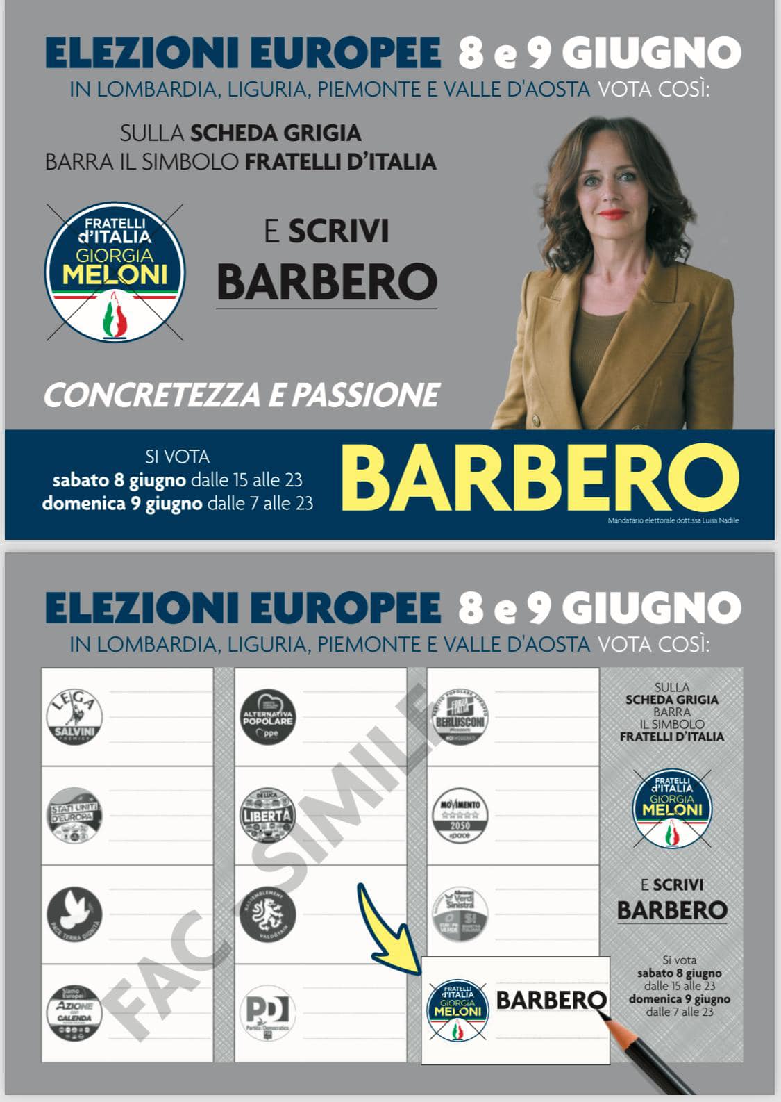 L’8 e 9 giugno barra il simbolo di Fratelli d’Italia e scrivi BARBERO