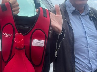"Donato da AssiMascia, è arrivati il presidio Act Fast: un giubbino che permette di simulare la tecnica della disostruzione (sia pacche interscapolari che manovra di Heimlich) in modo realistico" dice il presidente della Croce Rossa varazzina Claudio Ferrando.