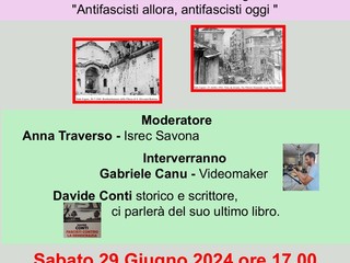"Moderatrice dell'incontro sarà la preziosa Anna Traverso dell'ISREC - Istituto storico della Resistenza di Savona, che ringraziamo di cuore per la costante collaborazione con la nostra Sezione di Vado Ligure - spiega Piera Murru, presidente della Sezione Anpi di Vado Ligure - Concluderà la giornata lo storico Davide Conti che, presentando il suo ultimo libro "Fascisti contro la democrazia", ci illustrerà la situazione politica attuale, confrontandola con quella del ventennio".