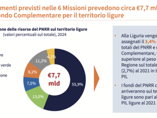 Partiamo dalle basi: quanti fondi arriveranno in Liguria? Stando ai dati presentati nel report Liguria 2030, in totale sono previsti 7,7 miliardi di euro, pari al 3,4% delle risorse totali del Piano. Una cifra notevole se si pensa che la Liguria pesa il 2,7% in termini di PIL su scala nazionale.