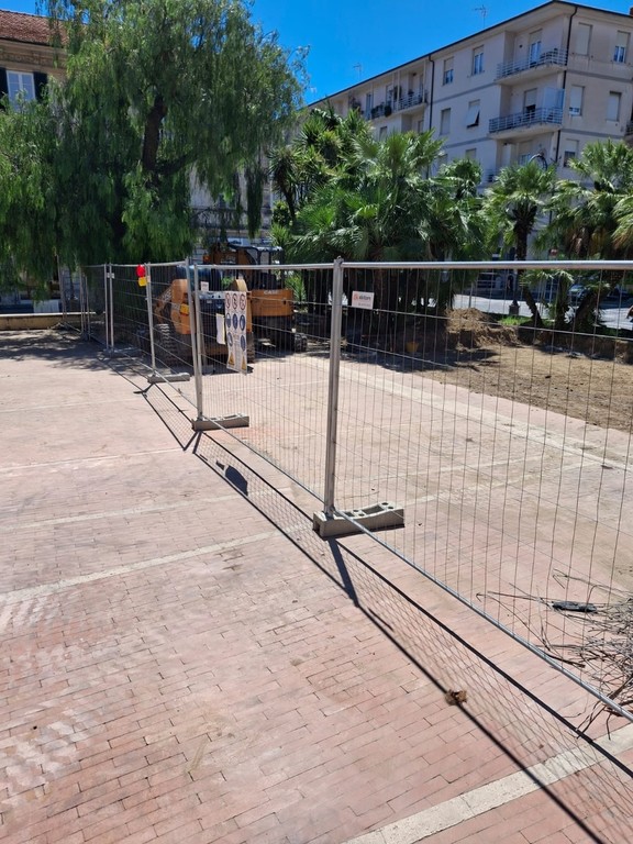 Piazza del Popolo il cui progetto complessivo prevede un completo restyling con interventi nei controviali, la realizzazione di pensiline moderne e leggere per il mercatino dei prodotti del territorio, la demolizione dell’ex bar Sati, il posizionamento di bagni pubblici accessibili anche per disabili e, già in realizzazione nel primo lotto, l’eliminazione di zone d’ombra e nascoste create dalla presenza di aiuole per la realizzazione di un palco con gradini e sedute che non solo potrà essere utilizzato per la realizzazione di eventi, ma diventerà importante punto di ritrovo e centro di aggregazione.