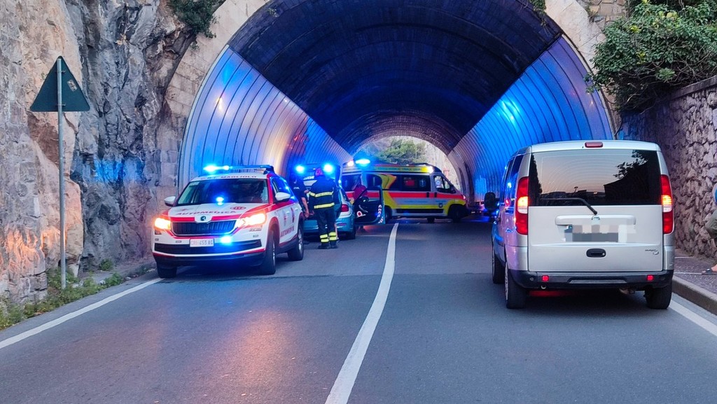 Sperona con l'auto una moto lungo l'Aurelia nella galleria Castelletto: due feriti a Finale