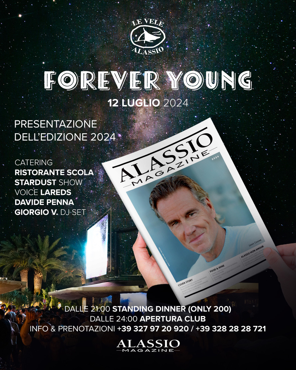 Venerdì 12 luglio vi aspettiamo con il nostro nuovo format "Forever Young" a partire dalle ore 21:00 dedicato a tutte le età. La serata sarà dedicata alla presentazione di Alassio Magazine Edizione 2024 con standing dinner curata dal catering "Ristorante Scola", l'intrattenimento dalla performer e cantante LaReds e lo spettacolo da "Stardust Show". La serata proseguirà con Club Disco a partire dalle ore 24:00 con la musica dei dj Davide Penna e Giorgio V.