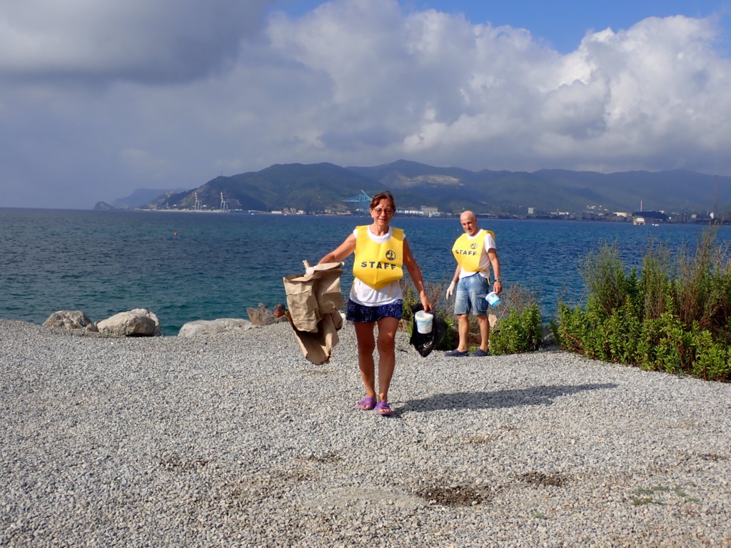 Dopo la classica foto di gruppo i volontari si sono diretti in parte sul molo e in parte sulla spiaggia alla foce del Letimbro. Specialmente sul molo ci si è subito resi conto che la situazione era davvero sconvolgente. Tra gli scogli sono stati recuperati rifiuti di ogni tipo, soprattutto bottiglie di vetro, molte delle quali frantumate, bottiglie e sacchetti di plastica, contenitori di ogni tipo.