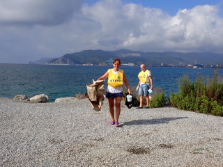 Dopo la classica foto di gruppo i volontari si sono diretti in parte sul molo e in parte sulla spiaggia alla foce del Letimbro. Specialmente sul molo ci si è subito resi conto che la situazione era davvero sconvolgente. Tra gli scogli sono stati recuperati rifiuti di ogni tipo, soprattutto bottiglie di vetro, molte delle quali frantumate, bottiglie e sacchetti di plastica, contenitori di ogni tipo.
