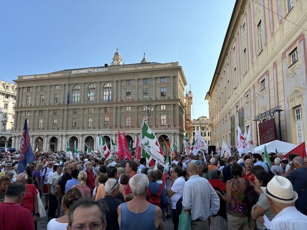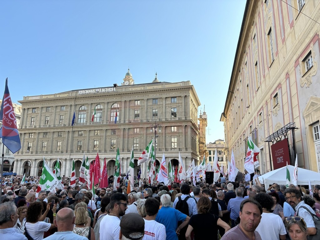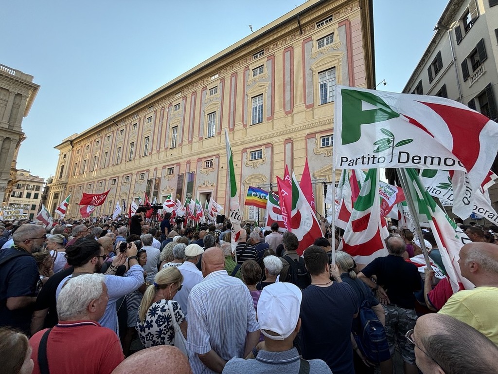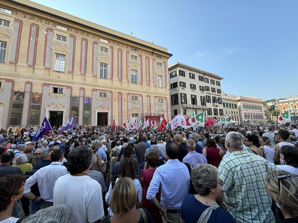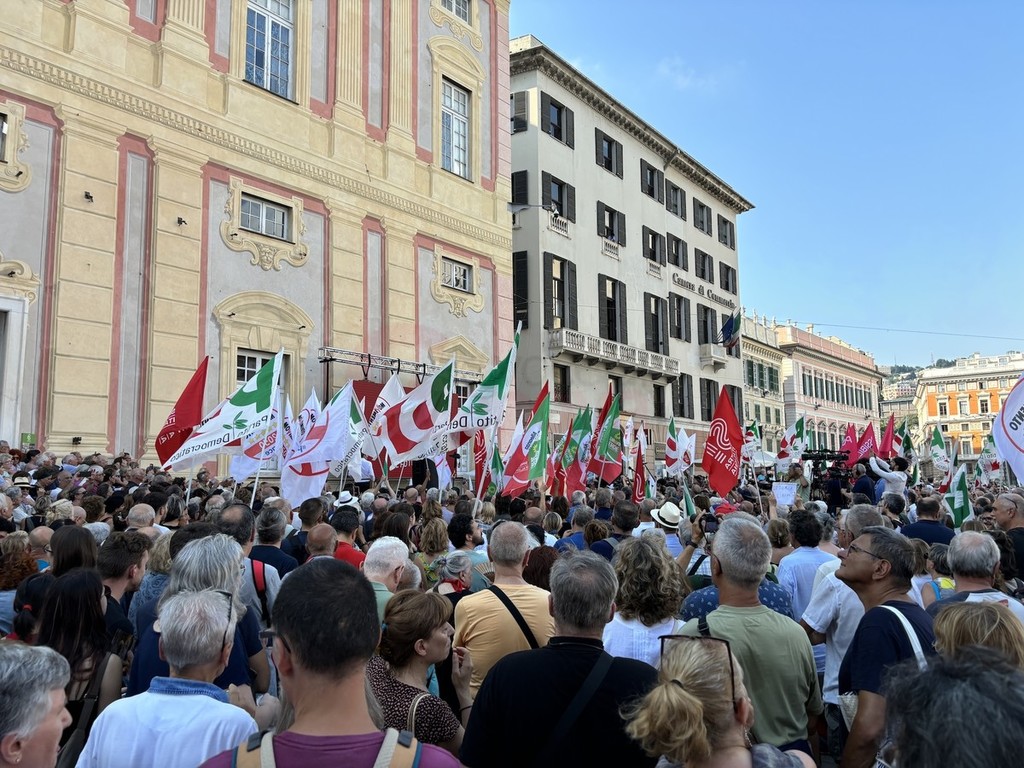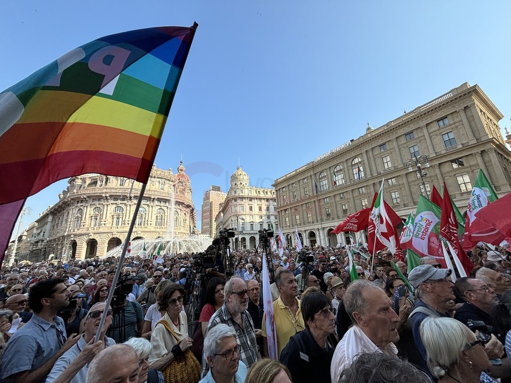 Sul palco di piazza De Ferrari sono saliti i leader del centrosinistra nazionale, da Elly Schlein (PD) a Giuseppe Conte (M5S) passando per Nicola Fratoianni e Angelo Bonelli (AVS). In piazza anche una delegazione di Azione oltre a ‘Linea Condivisa’ e ‘Lista Sansa’. Presente anche Andrea Orlando, principale indiziato per il ruolo di candidato presidente del centrosinistra alle prossime regionali.
