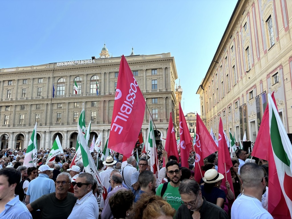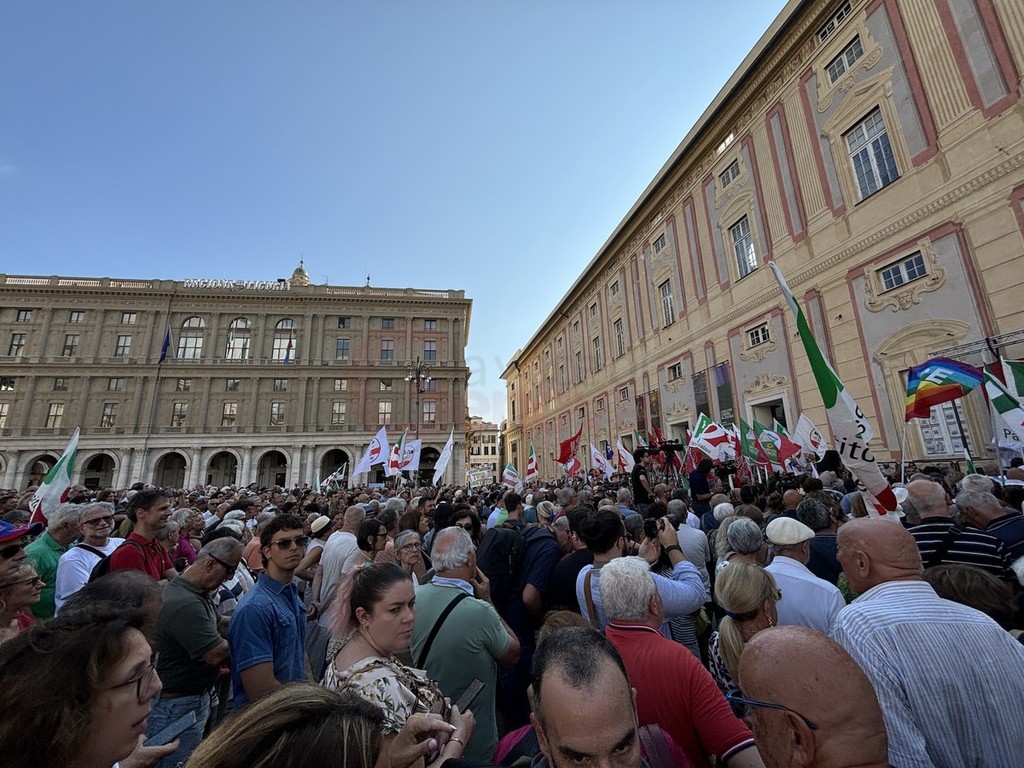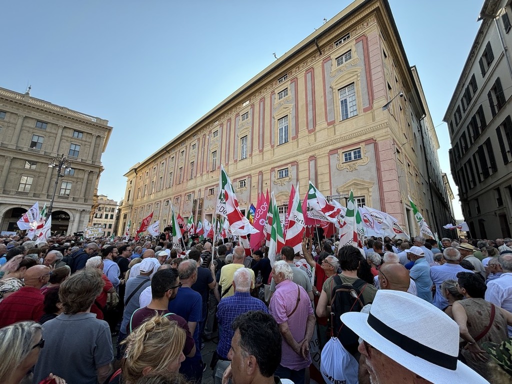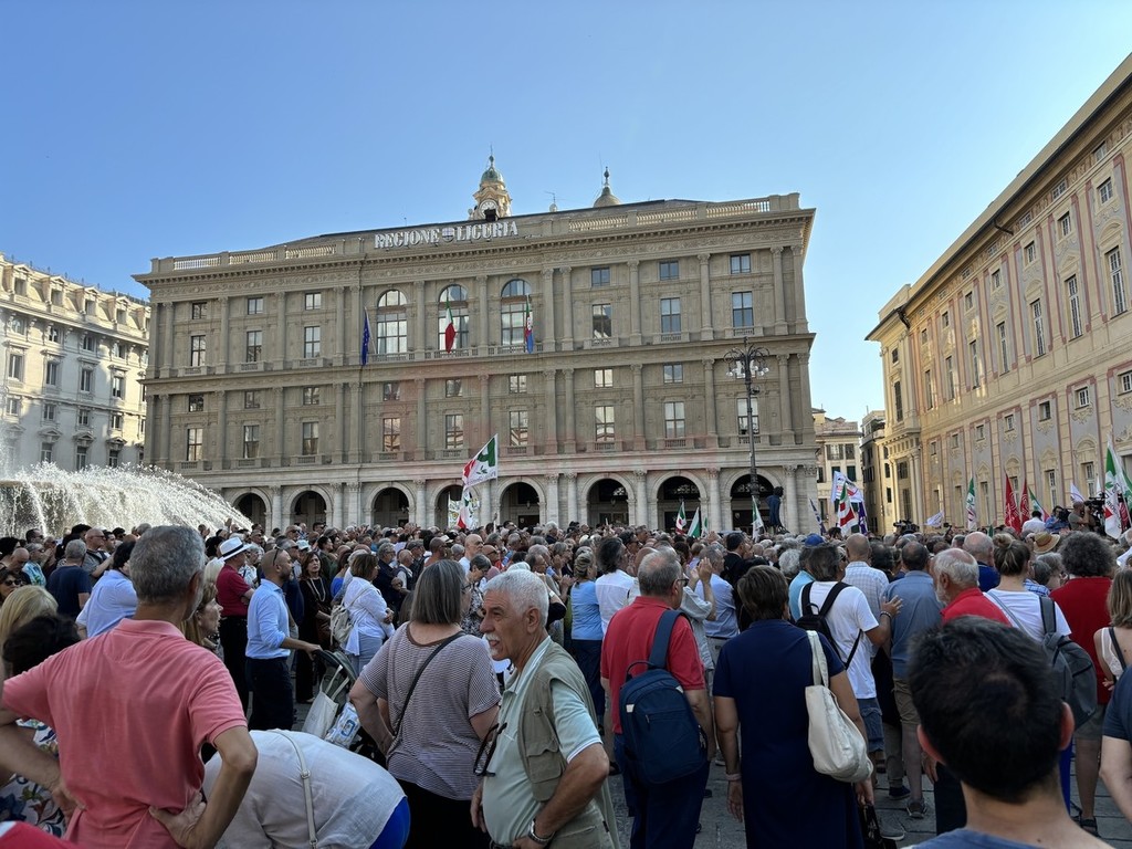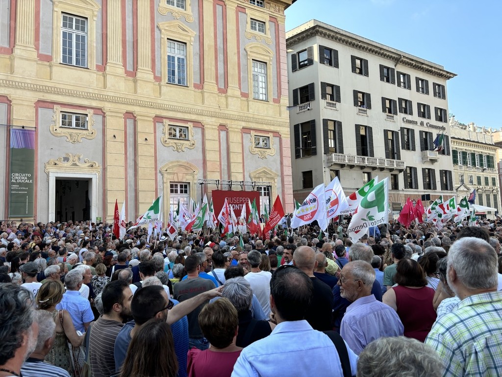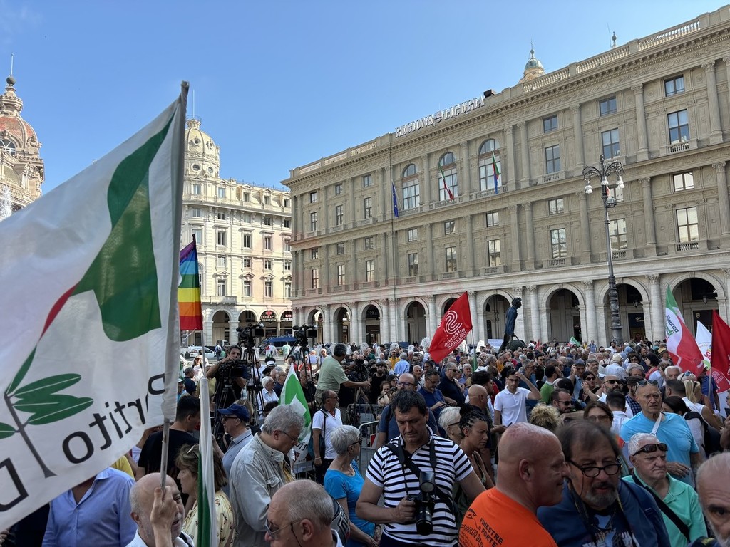 Sul palco di piazza De Ferrari sono saliti i leader del centrosinistra nazionale, da Elly Schlein (PD) a Giuseppe Conte (M5S) passando per Nicola Fratoianni e Angelo Bonelli (AVS). In piazza anche una delegazione di Azione oltre a ‘Linea Condivisa’ e ‘Lista Sansa’. Presente anche Andrea Orlando, principale indiziato per il ruolo di candidato presidente del centrosinistra alle prossime regionali.