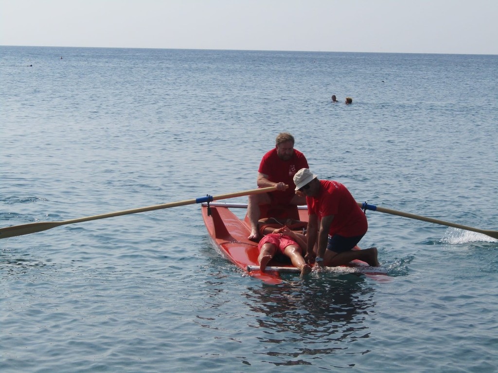 È stata organizzata questa mattina, in occasione della "Giornata mondiale della prevenzione dell'annegamento", una dimostrazione pratica di un salvamento nello specchio acqueo di fronte ai Bagni Milano.