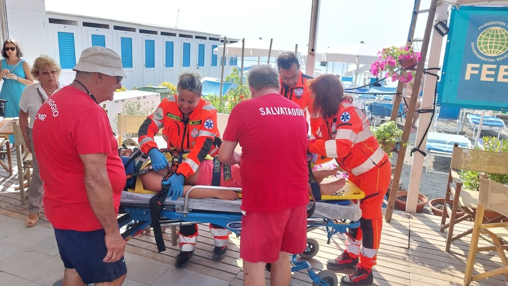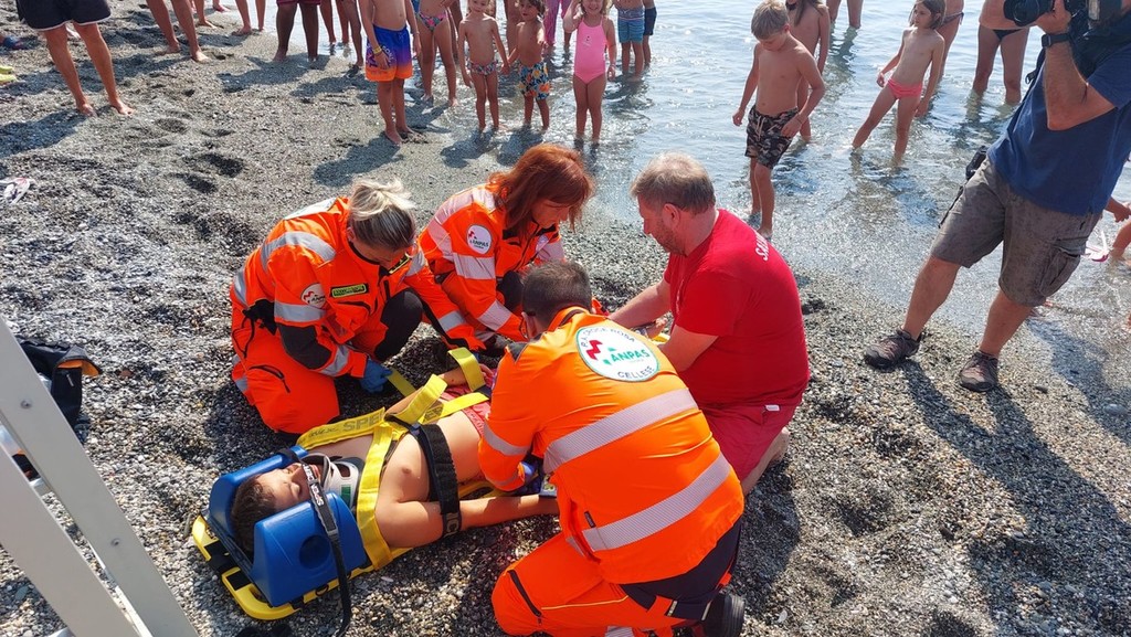 Nello stabilimento balneare, con l’ausilio dei bagnini e del personale preposto, si è svolta quindi la simulazione con il coinvolgimento delle associazioni locali come la Croce Rosa, la Protezione Civile, i Carabinieri e la Polizia Locale. Presente anche il sindaco Marco Beltrame.