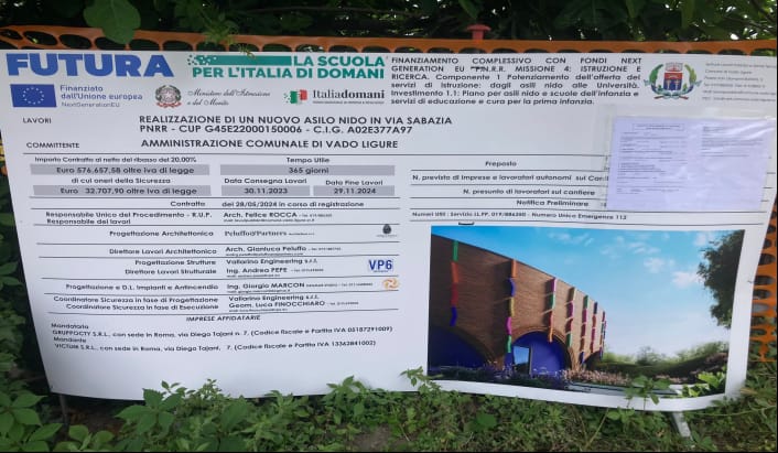 Sono stati avviati i lavori per la realizzazione di nuovo asilo nido in via Sabazia a Vado Ligure.