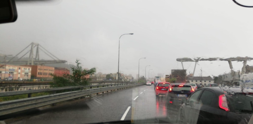 Dalla galleria dell'autostrada sotto la collina di Coronata sulla A10, direzione Genova Ovest, la ragazza prende il telefono, chiama casa e poi l'amica. "È crollato il ponte Morandi". Dall'altra parte della cornetta l'interlocutrice sta zitta, ma pensa in sequenza di aver capito male, e poi ad un allarme per un distacco di materiale da sotto le arcate del viadotto, come tanti ce n'erano stati negli anni fino a quel momento, denunciati di volta in volta dai comitati della zona.