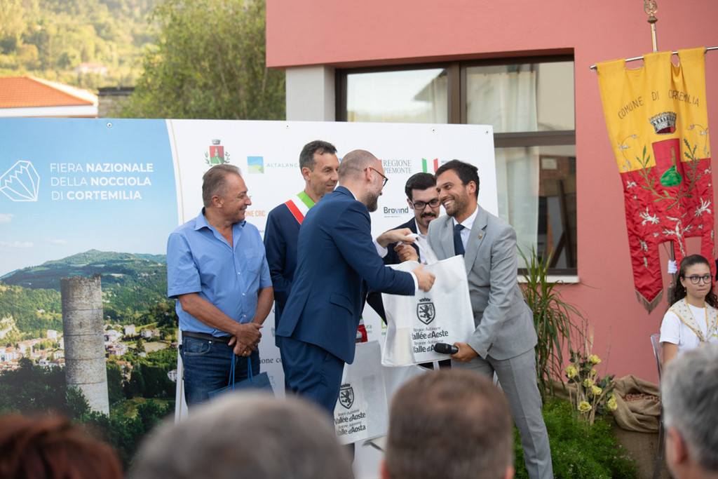 Durante la cerimonia di inaugurazione, aperta dal sindaco di Cortemilia, Roberto Bodrito, che ha fatto gli onori di casa, moderati dal giornalista e speaker radiofonico Fabio Gallina, si sono susseguiti la serie di interventi dei tanti ospiti presenti, che hanno evidenziato l’interesse e l’importanza di questa manifestazione, così come la vicinanza da parte di tutti al Comune di Cortemilia: a partire dal presidente del Gal Langhe e Roero leader, Massimo Gula, seguito dal presidente dell’Ente Fiera della Nocciola, Flavio Borgna; poi il presidente dell’Atl Langhe Monferrato Roero, Mariano Rabino ed Enrico Nada per la Camera di Commercio di Cuneo, oltre al presidente del Consorzio dell’Asti, Stefano Ricagno. Presenti anche il vicepresidente dell’Unione montana Alta Langa, Valter Sandri, con il collega dell’Associazione dei Comuni del Roero, Enrico Faccenda. A seguire, poi, gli interventi del consigliere della Provincia di Savona, Roberto Molinaro, del consigliere della Regione Liguria, Angelo Vaccarezza, del presidente della Provincia di Cuneo, Luca Robaldo e dell’assessore all’Agricoltura della Regione Valle d’Aosta Marco Carrel, con cui il sindaco Bodrito ha confermato il patto di alleanza per allargare i confini della promozione e del gusto della splendida nocciola langarola, stavolta alla corte della fontina delle montagne valdostane. È stato, infine, l’assessore all’Agricoltura della Regione Piemonte, Paolo Bongioanni, che ha offerto un’ulteriore riflessione a 360 gradi sull’odierna realtà del comparto della nocciola.