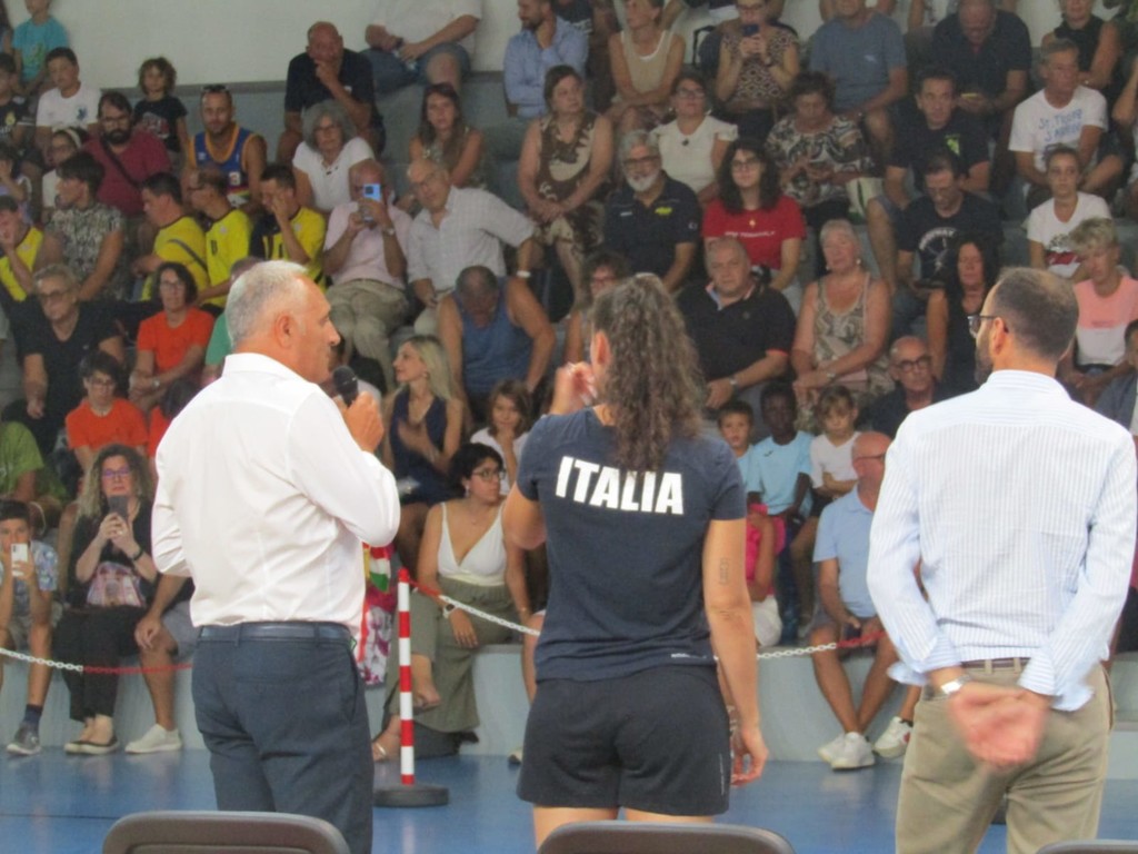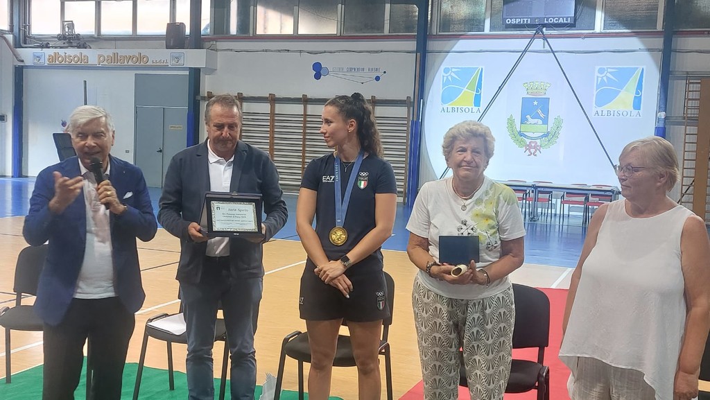 La medaglia d'oro olimpica Ilaria Spirito è stata accolta questa sera nel Palazzetto dello Sport albisolese tra gli spalti gremiti.