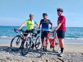 La fatica del viaggio è iniziato venerdì 23 agosto alle 17 con la partenza in bicicletta da Savona a fianco di Max Vanzetti forte runner di Lombriasco e Davide Gino sportivo torinese, campione di nuoto pinnato.