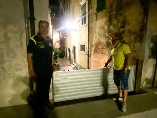 Si tratta di modernissime porte in alluminio, in sostituzione delle vecchie tavole di legno, che vengono posizionate presso gli accessi al cuore della città vecchia, lato lungocenta, in caso di allerta arancione o rossa, quando il fiume supera il limite di guardia. “In tal caso, il nostro compito è chiudere gli accessi– continua il coordinatore ingauno -. I volontari questa sera hanno montato le porte e controllato le guide di chiusura. Inoltre, spetta a noi occuparci della manutenzione ordinaria delle barriere”.