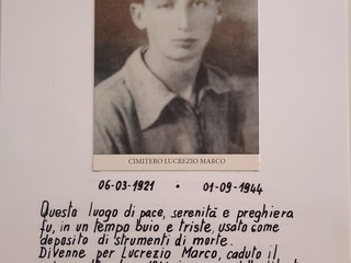 Un quadro commemorativo ha poi sintetizzato quanto successe quel lontano 1° settembre 1944 aLucrezio Marco: "Questo luogo di pace, serenità e preghiera fu, in un tempo buio e triste, usato come deposito di strumenti di morte. Divenne per Lucrezio Marco, caduto il 1° settembre 1944 in nome della libertà e della pace, l'ultimo sudario".