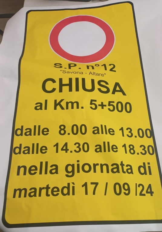 Martedì 17 settembre comunque durante una fase di lavorazione si verificherà un'interruzione della viabilità nelle fasce orarie dalle 8:00 alle 13:00 e dalle 14:30 alle 18:30.