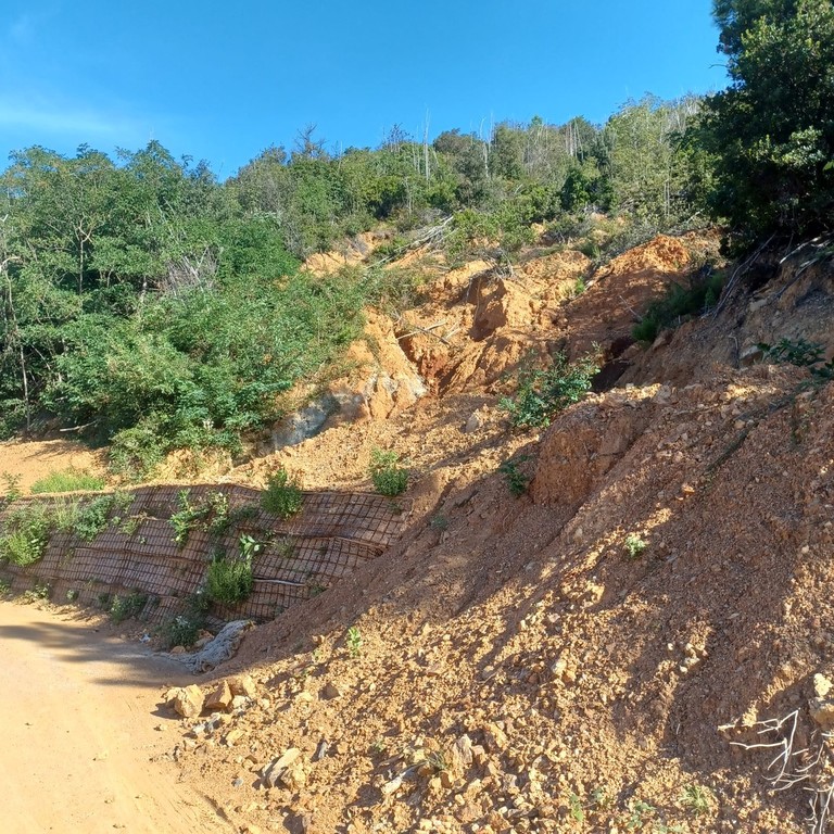 La strada interrotta per una frana dall'alluvione del 2019. I lavori erano ripartiti ma poi si sono sospesi per una variante