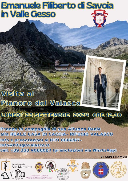 La visita del principe Emanuele Filiberto proseguirà nella giornata di lunedì 23 settembre con il pranzo presso il rifugio Valasco, ex Casa Reale di Caccia.
