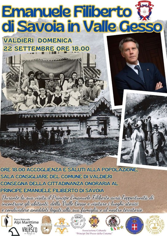 Durante la sua visita, il principe Emanuele Filiberto di Savoia avrà l’opportunità di incontrare gli abitanti della Valle Gesso, visitare i luoghi storici e condividere memorie legate alla sua famiglia e al territorio della Valle Gesso.