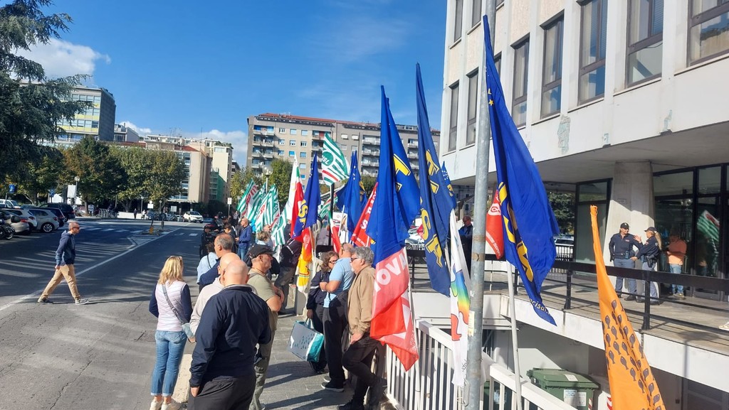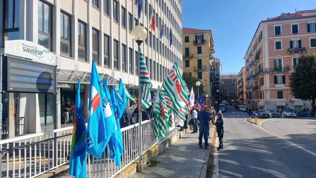 "Speculazione, zero investimenti, Socrate sulla pelle dei dipendenti". Questo lo striscione che campeggia davanti al palazzo della Provincia posizionato dalle organizzazioni sindacali e dall'rsu per protestare contro Tpl Linea in merito all'assenza di dialogo sull'organizzazione del lavoro, i livelli occupazionali, i carichi di lavoro e soprattutto la carenza di finanziamenti.