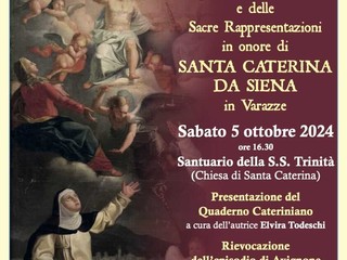 Sabato 5 ottobre dalle ore 16:30 al Santuario Santissima Trinità, il gruppo di Varazze dell'Associazione Internazionale Caterinati organizzerà un evento per ricordare il venticinquesimo anniversario dell'elezione di santa Caterina da Siena a compatrona d'Europa e il 648esimo del passaggio della santa da Varazze durante il suo viaggio di ritorno da Avignone.