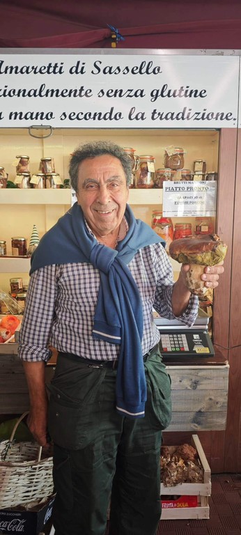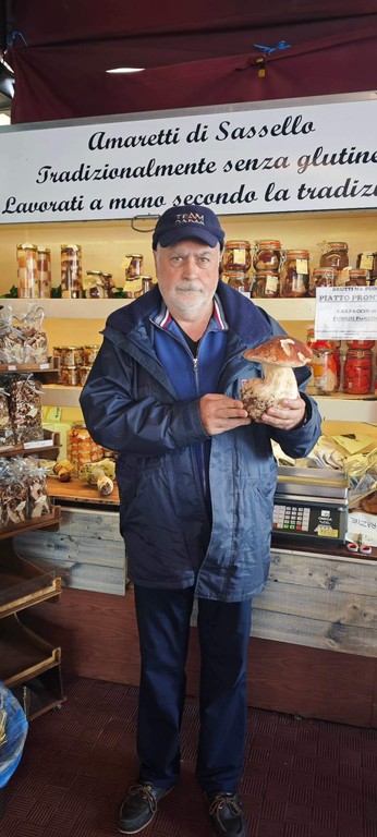 Ex storico comandante della polizia locale, in pensione dal 2019, con il fungo che ha raccolto del peso di 1.04 kg ha vinto il premio messo in palio dal Bar Jole in memoria di Elio Rossi, storico gestore dell'attività sassellese.