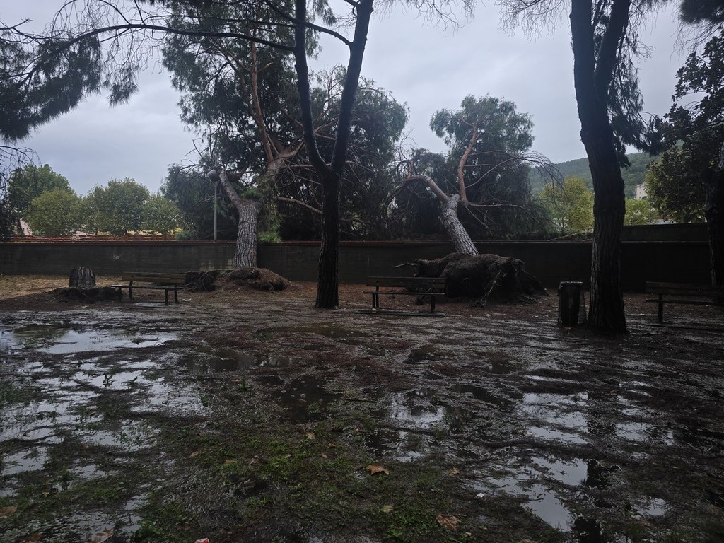 Nuovo episodio di caduta alberi a Savona: questa mattina altri due pini sono crollati all'interno dei giardini di via delle Trincee, nei pressi di via Tripoli. Un altro albero era caduto la settimana scorsa.
