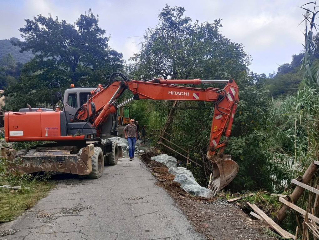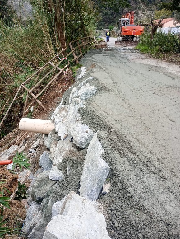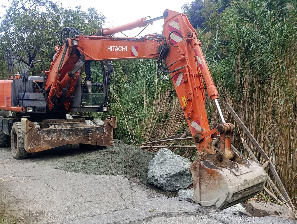 Messo in sicurezza il tratto di strada tra le due località danneggiato in più punti. Stop ai curiosi: divieto d'accesso in località Olmo alle persone non autorizzate