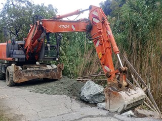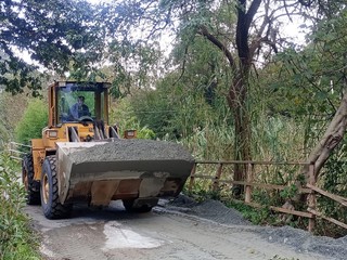 Messo in sicurezza il tratto di strada tra le due località danneggiato in più punti. Stop ai curiosi: divieto d'accesso in località Olmo alle persone non autorizzate