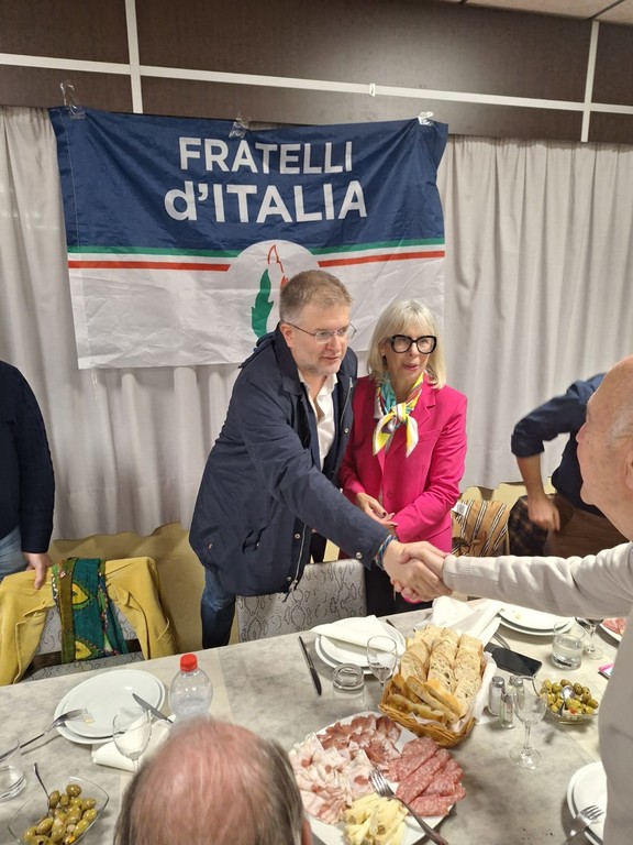 L’occasione è una cena organizzata nella frazione di Carpeneto dai candidati di Fratelli d’Italia al Consiglio regionale ligure per la provincia di Savona Antonella Tosi, recentemente impegnata proprio al fianco di Fidanza alle Elezioni europee dello scorso giugno e forte di un lungo impegno politico e amministrativo tra le fila della destra, e Massimo Arecco, ex vicesindaco di Savona che oggi siede nel Consiglio comunale del capoluogo come capogruppo d’opposizione. Presente, tra gli altri, anche il sindaco meloniano di Millesimo Francesco Garofano.