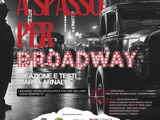 Sabato 26 ottobre alle ore 21 al Teatro Gabriello Chiabrera andrà in scena il musical "A spasso per Broadway", ideato, scritto e diretto da Marta Arnaldi, con la direzione musicale del maestro Dario Caruso e la supervisione delle coreografie di Alessia Berruti. L'incasso sarà devoluto a favore dell'associazione Sono Sempre Io, costituita da medici e infermieri ospedalieri dell’Hospice Centro Misericordia Santa Maria Giuseppa Rossello, che accoglie malati terminali oncologici e affetti da sclerosi laterale amiotrofica.