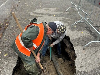 Il sindaco Mirri: "Abbiamo chiamato una gru per sollevare il mezzo e stabilizzato il terreno; procederemo con l'asfaltatura non appena sarà assestato"