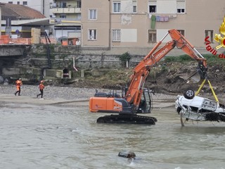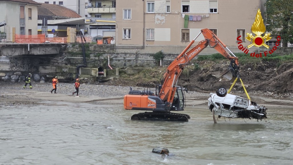 Cairo, proseguono le operazioni dei vigili del fuoco per la rimozione delle carcasse di auto nel Bormida (FOTO E VIDEO)