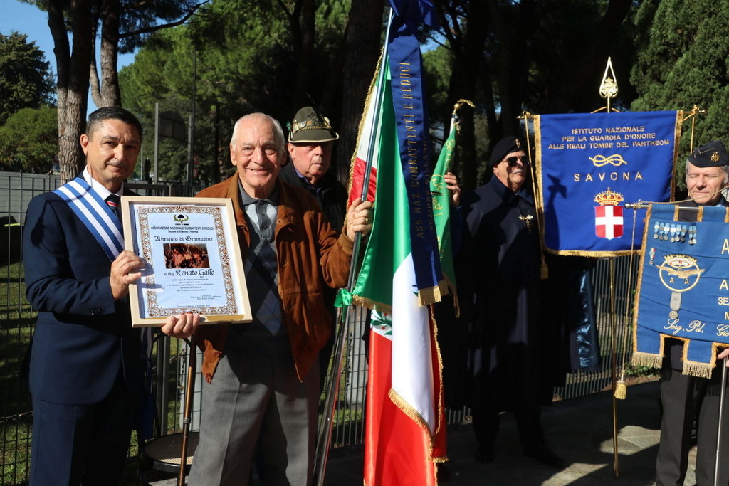 Dopo l'alzabandiera e gli onori ai caduti, è stato premiato il veterano dell'Associazione, Renato Gallo. Successivamente, don Fabio Bonifazio ha celebrato la Messa sull'altare fisso, collocato davanti ai gradini del monumento ai caduti.