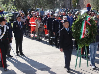 Dopo l'alzabandiera e gli onori ai caduti, è stato premiato il veterano dell'Associazione, Renato Gallo. Successivamente, don Fabio Bonifazio ha celebrato la Messa sull'altare fisso, collocato davanti ai gradini del monumento ai caduti.