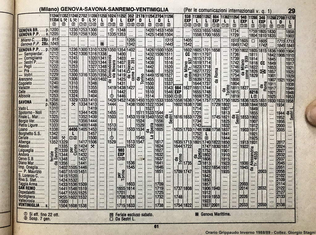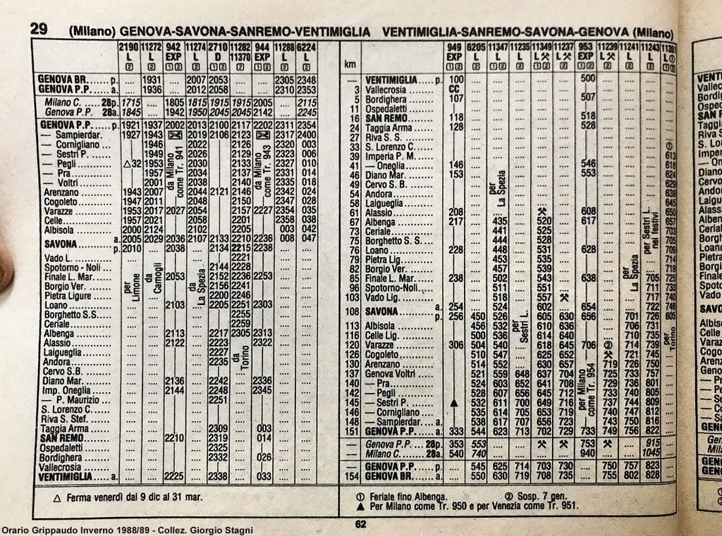 "Nel 1988 la tratta Finale Ligure – Andora era, come oggi, in alcuni tratti a binario unico. Nonostante questo, si viaggiava sempre per qualsiasi necessità.