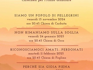 Si inizierà venerdì 15 novembre a Carbuta con il tema "Siamo un popolo di pellegrini", si proseguirà venerdì 24 gennaio a Orco con la serata "Non rimaniamo sulla soglia" e martedì 11 febbraio a Feglino con "Riconosciamoci amati... perdonati" e si terminerà venerdì 14 marzo ancora a Feglino con l'incontro "Perché sia gioia piena".