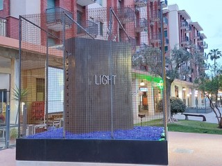 Un filo di luce al neon, combinato con il vetro lavorato dai maestri vetrai, lega Andora a Venezia e all’arte di Federica Marangoni.