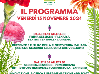 Il secondo congresso del fiore Made in Italy organizzato da Coldiretti, in partnership con Assofloro e Affi, ha inizio domani, venerdì 15 novembre 2024, a partire dalle ore 10.30, presso il Teatro Centrale di Sanremo, con la relazione del Presidente nazionale di Coldiretti Ettore Prandini.