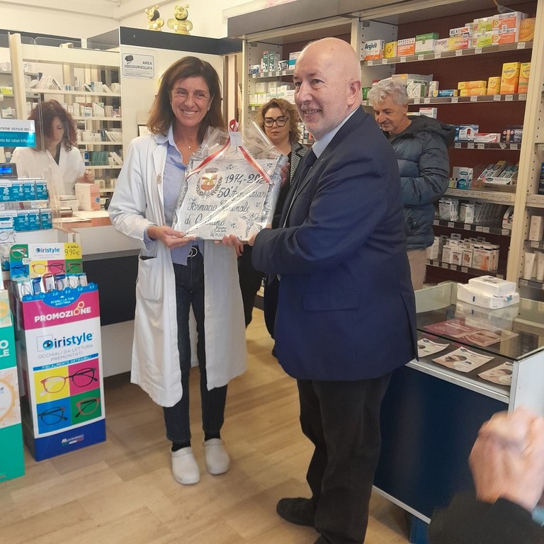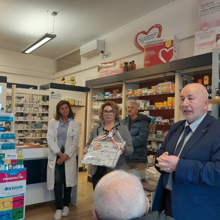 La farmacia comunale di Quiliano compie 50 anni oggi ed è stata celebrata questa mattina e oltre al Sindaco Nicola Isetta, all'amministrazione comunale, alla direttrice della farmacia dottessa Ester Manno e i suoi collaboratori, erano presenti il professor Franco Bartolini e Giovanni Patrone, consiglieri comunali in carica al momento dell'apertura della farmacia, l'ex primo cittadino quilianese Fulvio De Lucis e Rosetta Bruzzone, per molti anni dipendente della farmacia di via Roma.