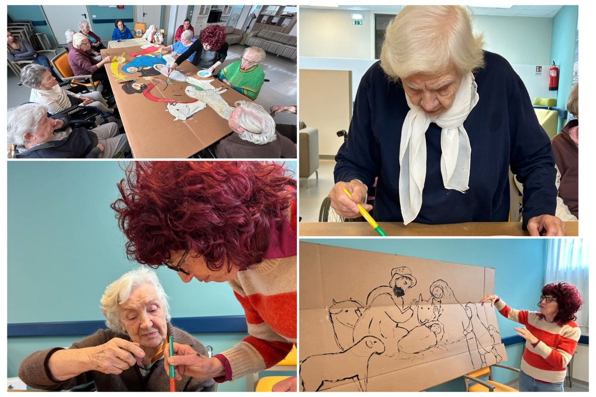 Bassanello ha fatto lo schizzo della sacra famiglia mentre gli ospiti hanno poi proceduto a colorarla con le tecniche apprese nei laboratori, con grande soddisfazione loro e delle famiglie per il lavoro fatto e che verrà esposto nella struttura.