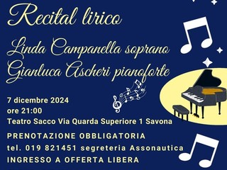 In occasione del 50esimo anniversario della fondazione di Assonautica, il sodalizio organizza un recital benefico che si terrà sabato 7 dicembre alle ore 21 presso il Teatro Sacco in via Quarda Superiore, Savona. L'ingresso è gratuito.