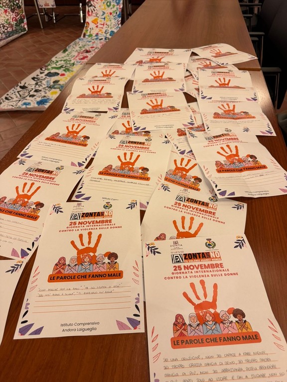 In base al progetto promosso al comune, nella mattinata di ieri, gli studenti delle classi terze delle media di Andora, avevano partecipato ad un laboratorio, a Palazzo Tagliaferro, con le psicologhe dello Zonta Graziella Cavanna e Beatrice Pandolfo, in cui hanno riflettuto sui contenuti degli scritti con cui, in forma anonima, i compagni avevano descritto le parole che feriscono. A fine laboratorio hanno scritto anche le parole che li rendevano felici e espresso i loro sentimenti attraverso un disegno comune. In molti, ha detto la dottoressa Cavanna, hanno concluso l’incontro dicendo “Quando ci rivediamo? Oggi siamo stati insieme ai compagni in modo diverso.”