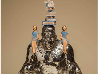La scultura “Equilibrio Antropomorfico”, che verrà esposta presso Palazzo Bastogi, raffigura un gorilla in meditazione, rappresentato come presenza protettiva e simbolo di saggezza primordiale. L’imponente figura sorregge tre bambine, ognuna delle quali incarna una fase evolutiva della stessa identità. Al centro dell’opera, una pila di libri sostiene la terza bambina in equilibrio precario, trasformandosi in metafora di crescita personale e conoscenza.